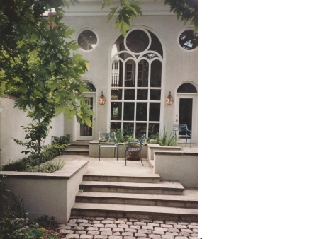 The client wanted to make the backyard space more usable, more private and take into account an historic brick wall at the back of the property. Our design included retaining walls to create three different sitting areas that extended the interior spaces and terrace toward the back where steps to a cobble path lead to the historic wall. We developed a visual focal point by transforming the wall into a wall fountain with a small pool at the back.