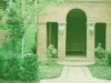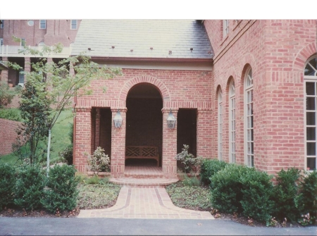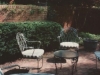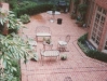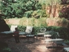 This small, confined backyard was transformed into a tasteful outdoor seating area that is well-used by the homeowners. Through the use of brick walls, two colors of brick paving and plantings, the landscape design extended the house into the garden.